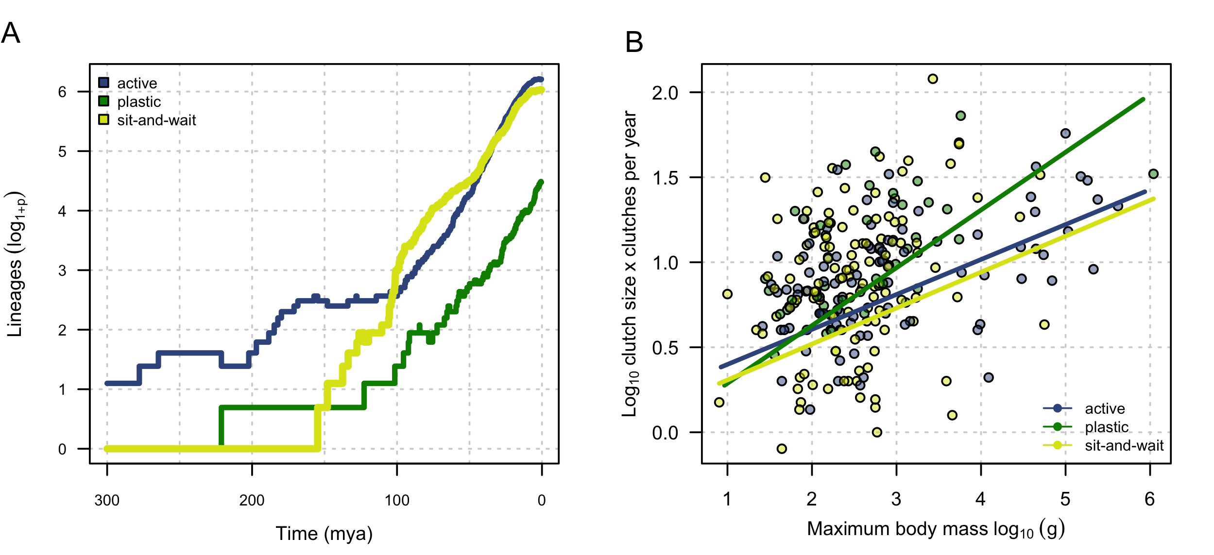 Not only was the net diversification of plastic foragers high, but they also evolved high reproductive effort