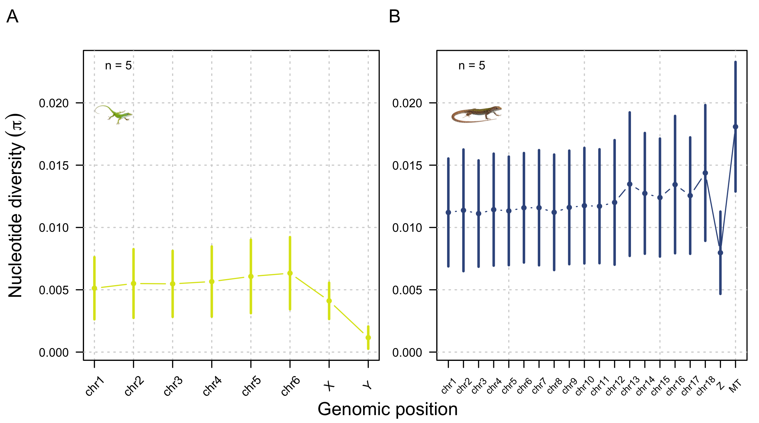 A higher genome-wide nucleotide diversity among active foragers could make up for the small size of their genomes